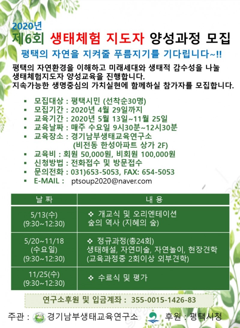 2020년 생태체험지도자 양성과정모집